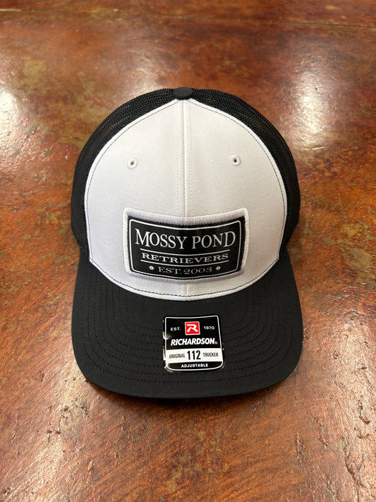 Mossy Pond Retrievers White/Black Hat with Black Patch