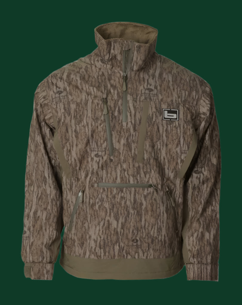The popular, best-selling Chesapeake Jacket injected with STRETCH. The GO3-LAYER™ fabric construction provides lightweight performance with superior durability. Injected with 4-way stretch for extreme maneuverability and comfort. A sensationally comfortable coral-fleece lining is wrapped in a SHEDS™ waterproof/breathable shell. Coral-fleece lined upper hand-warmer pockets. Convenient magnetic and zippered chest pockets, adjustable stretch cuffs, and an elastic drawcord hem. The Pullover option is equipped with a zippered drop-in torso pocket. The Pullover design features a mock that provides additional coverage and neck protection. Two YKK zippered hand pockets.